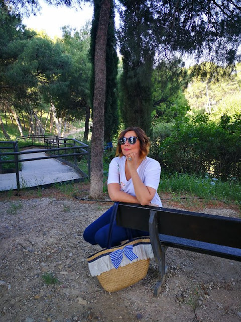 (Llevo: camiseta y jeans de Primark, capazo de tienda local, sandalias de El rastro de Zaragoza, Gafas de El corte Inglés, anillo Ong estrella de la mañana y reloj casio)